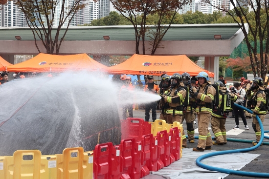 ¡ã Áö³­ÇØ ¼Ò¹æ´ë¿øµéÀÌ ¼ÛÆÄ±¸ °¡¶ô½ÃÀå ÀÏ´ë¿¡¼­ ¿­¸° Àç³­´ëÀÀ ¾ÈÀüÇѱ¹ÈƷÿ¡¼­ Àü±âÂ÷ È­À縦 °¡Á¤ÇÑ Áø¾Ð ÈÆ·ÃÀ» ÁøÇàÇϰí ÀÖ´Ù. ¼ÛÆÄ±¸