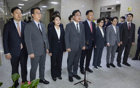 ¡ã ±¹¹ÎÀÇÈû ¼Û¾ð¼® ¿ø³»´ëÇ¥¿Í ¿î¿µÀ§¿øµéÀÌ 6ÀÏ ±¹È¸ ¿î¿µÀ§¿øÈ¸ ȸÀÇ½Ç ¾Õ¿¡¼­ À̳¯ ¿î¿µÀ§ ȸÀÇ Á¤È¸ Á÷ÈÄ ¹ß»ýÇÑ ¿©¾ß ÀÇ¿ø °£ ¹°¸®Àû Ãæµ¹ °ü·Ã ±âÀÚȸ°ßÀ» Çϰí ÀÖ´Ù. À̳¯ ±¹È¸ ¿î¿µÀ§¿¡¼­ ¿­¸° ´ëÅë·Éºñ¼­½Ç°ú ±¹°¡¾Èº¸½Ç, ´ëÅë·É°æÈ£Ã³ µî¿¡ ´ëÇÑ ±¹Á¤°¨»ç¿¡¼­´Â ´õºÒ¾î¹ÎÁÖ´ç À̱âÇå ÀÇ¿ø°ú ±¹¹ÎÀÇÈû ¼Û¾ð¼® ¿ø³»´ëÇ¥°¡ ¿©¾ß ¼³ÀüÀ¸·Î ±¹°¨ÀÌ Á¤È¸µÈ µÚ ¾ðÀïÀ» ¹úÀÌ´Ù '¹èÄ¡±â'¸¦ ÇÏ´Â ¹°¸®Àû Ãæµ¹ÀÌ ÀϾ´Ù. ¿¬ÇÕ´º½º