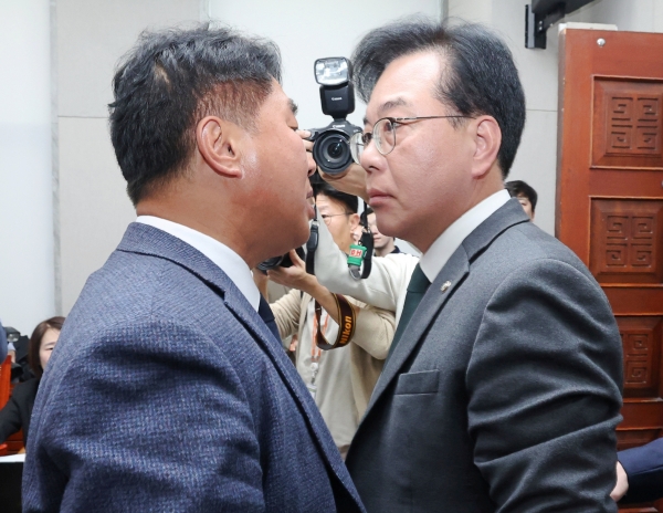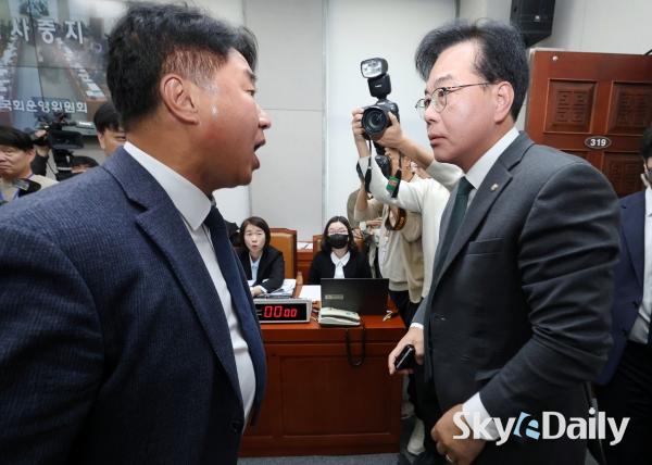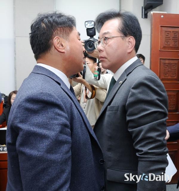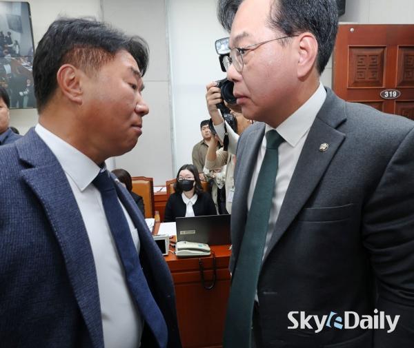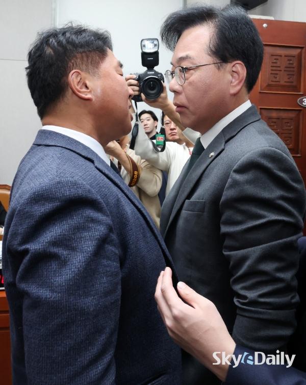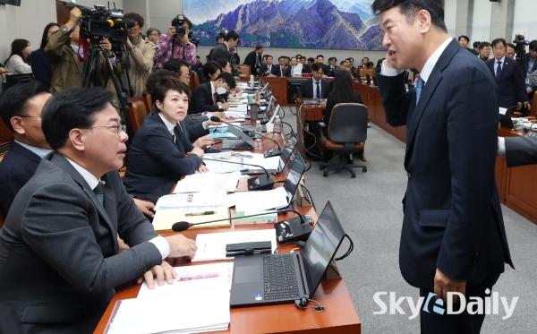 ¡ã ¼Û¾ð¼® ±¹¹ÎÀÇÈû ¿ø³»´ëÇ¥¿Í À̱âÇå ´õºÒ¾î¹ÎÁÖ´ç ÀÇ¿øÀÌ 6ÀÏ ¼¿ï ¿©Àǵµ ±¹È¸¿¡¼ ¿¸° ¿î¿µÀ§¿øÈ¸ÀÇ ´ëÅë·Éºñ¼½Ç°ú ±¹°¡¾Èº¸½Ç, ´ëÅë·É°æÈ£Ã³ µî¿¡ ´ëÇÑ ±¹Á¤°¨»ç¿¡¼ ¿©¾ß ¼³ÀüÀ¸·Î Á¤È¸ ÈÄ ÅðÀåÇÏ´Â °úÁ¤¿¡ À̸¥¹Ù ¡®¹èÄ¡±â¡¯¸¦ Çϸç Ãæµ¹Çϰí ÀÖ´Ù. À̳¯ ¿©¾ß´Â ±èÇöÁö ´ëÅë·É½Ç Á¦1ºÎ¼Ó½ÇÀå ÁõÀÎ ºÒÃâ¼® ¹®Á¦¸¦ µÎ°í °Å¼¼°Ô ¸ÂºÙ¾ú°í ±èº´±â ¿î¿µÀ§¿øÀåÀÌ °¨»ç¸¦ ÁßÁö ½ÃÄ×´Ù. ¹Ú¹Ì³ª ±âÀÚ ¨Ï½ºÄ«À̵¥Àϸ®