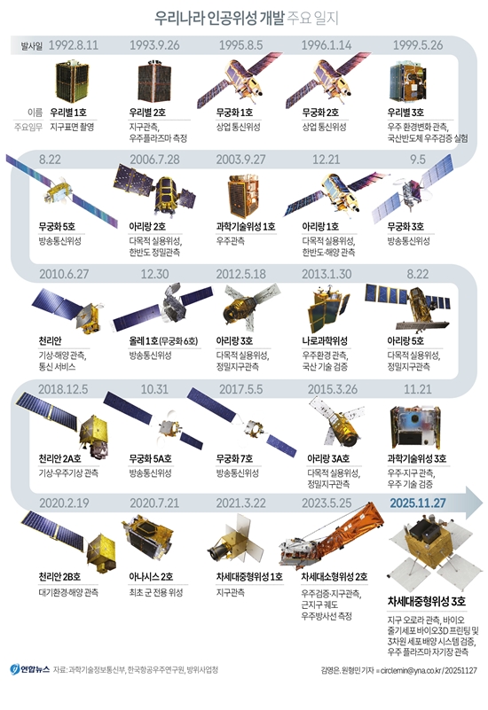 Çѱ¹Çü¹ß»çü ´©¸®È£(KSLV-II)°¡ 27ÀÏ »õº®, Àü³² °íÈï ³ª·Î¿ìÁÖ¼¾ÅÍ¿¡¼ ¾îµÒÀ» °¡¸£°í ¿ìÁÖ·Î ¶°¿Ã¶ú´Ù. ¹ß»ç ½Ã°¢Àº ¿ÀÀü 1½Ã13ºÐ 00ÃÊÀÌ´Ù. ´Ü ÇÑ ¹øÀÇ Èçµé¸²µµ ¾øÀÌ ´©¸®È£´Â Â÷¼¼´ëÁßÇüÀ§¼º 3È£¿Í 12±âÀÇ Å¥ºêÀ§¼ºÀ» °èȹµÈ °íµµ 600km ž絿±â±Ëµµ(Sun-synchronous orbit)¿¡ Á¤È®È÷ ¾ÈÂø½ÃÄ×´Ù. ³²±Ø ¼¼Á¾±âÁö¿ÍÀÇ Ã¹ ±³½ÅÀº 1½Ã55ºÐ¿¡ ÀÌ·ïÁ³´Ù. ¿ì¸®³ª¶ó°¡ µ¶ÀÚ °³¹ßÇÑ ¹ß»çü·Î ¼¼ ¹øÂ° ¿¬¼Ó ¼º°øÀ» ±â·ÏÇÑ ¼ø°£À̾ú´Ù.