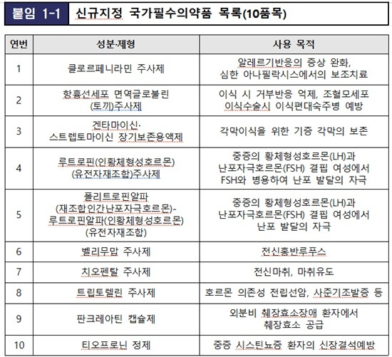 ¡ã ÇʼöÀǾàǰ 10Á¾ÀÌ ½Å±Ô ÁöÁ¤µÆ´Ù. »çÁøÁ¦°ø=½ÄǰÀǾàǰ¾ÈÀüó