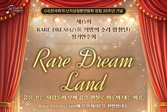 Çѱ¹Èñ±Í¡¤³­Ä¡¼ºÁúȯ¿¬ÇÕȸ´Â ¿À´Â 22ÀÏ ¿ÀÈÄ 7½Ã, ¼¼Á¾¹®È­È¸°ü M¾¾¾îÅÍ¿¡¼­ Á¦15ȸ RARE DREAMZ Á¤±â¿¬ÁÖȸ ¡®Rare Dream Land¡¯¸¦ °³ÃÖÇÑ´Ù°í ¹àÇû´Ù. À̹ø °ø¿¬Àº ¡®Èñ¸ÁÀÇ ¼Ò¸® ÇÕâ´Ü¡¯¿¡¼­ ÆÀ¸íÀ» º¯°æÇÑ ÀÌÈÄ Ã³À½ ¿­¸®´Â Á¤±â¿¬ÁÖȸ´Ù.