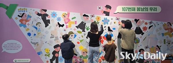 ¡ã Á¦107ÁÖ³â 3¡¤1ÀýÀ» ÀÌÆ² ¾ÕµÐ 27ÀÏ ¿ÀÀü, ¼¿ï ¼´ë¹®±¸ ±¹¸³´ëÇѹα¹ÀÓ½ÃÁ¤ºÎ±â³ä°üÀ» ãÀº ¾î¸°ÀÌ¿Í ½Ã¹ÎµéÀÌ ¡®µ¶¸³±¹À» ¼±¾ðÇÏ´Ù!¡¯ üÇè ÇÁ·Î±×·¥¿¡ Âü¿©ÇÏ¸ç º®¸éÀ» ²Ù¹Ì°í ÀÖ´Ù. À̹ø Çà»ç´Â 3¡¤1¿îµ¿ºÎÅÍ µ¶¸³¼±¾ð¿¡ À̸£´Â °úÁ¤À» ´Ùä·Î¿î Àü½Ã¿Í ¹®È Çà»ç·Î ²Ù¸çÁ³À¸¸ç 3¡¤1Àý ´çÀÏ ¼´ë¹®Çü¹«¼Ò¿ª»ç°ü ÀÏ´ë¿¡¼´Â ´ë±Ô¸ð ¸¸¼¼ ÀçÇö Çà»ç°¡ ÁøÇàµÆ´Ù. ÀÌÁ¾¿ø ±âÀÚ ¨Ï½ºÄ«À̵¥Àϸ®